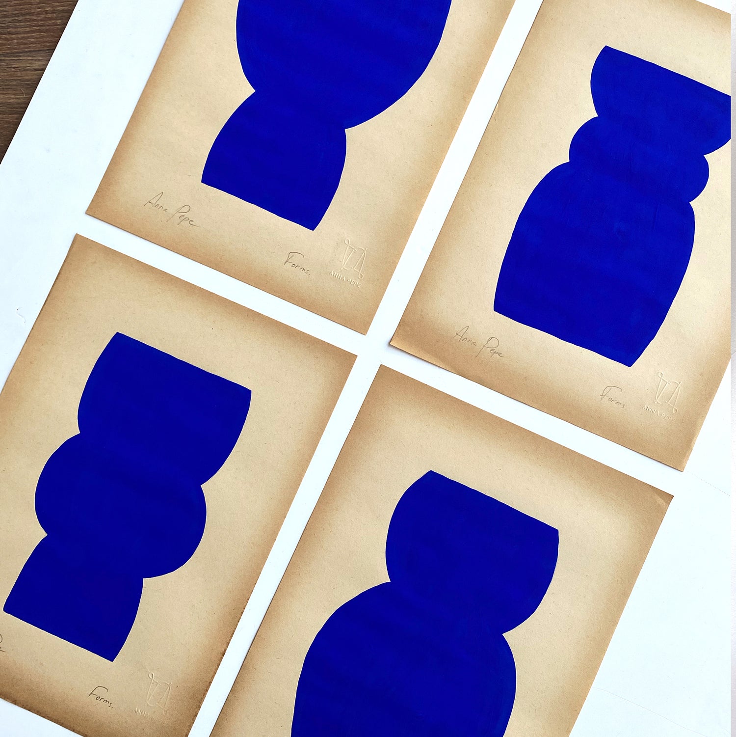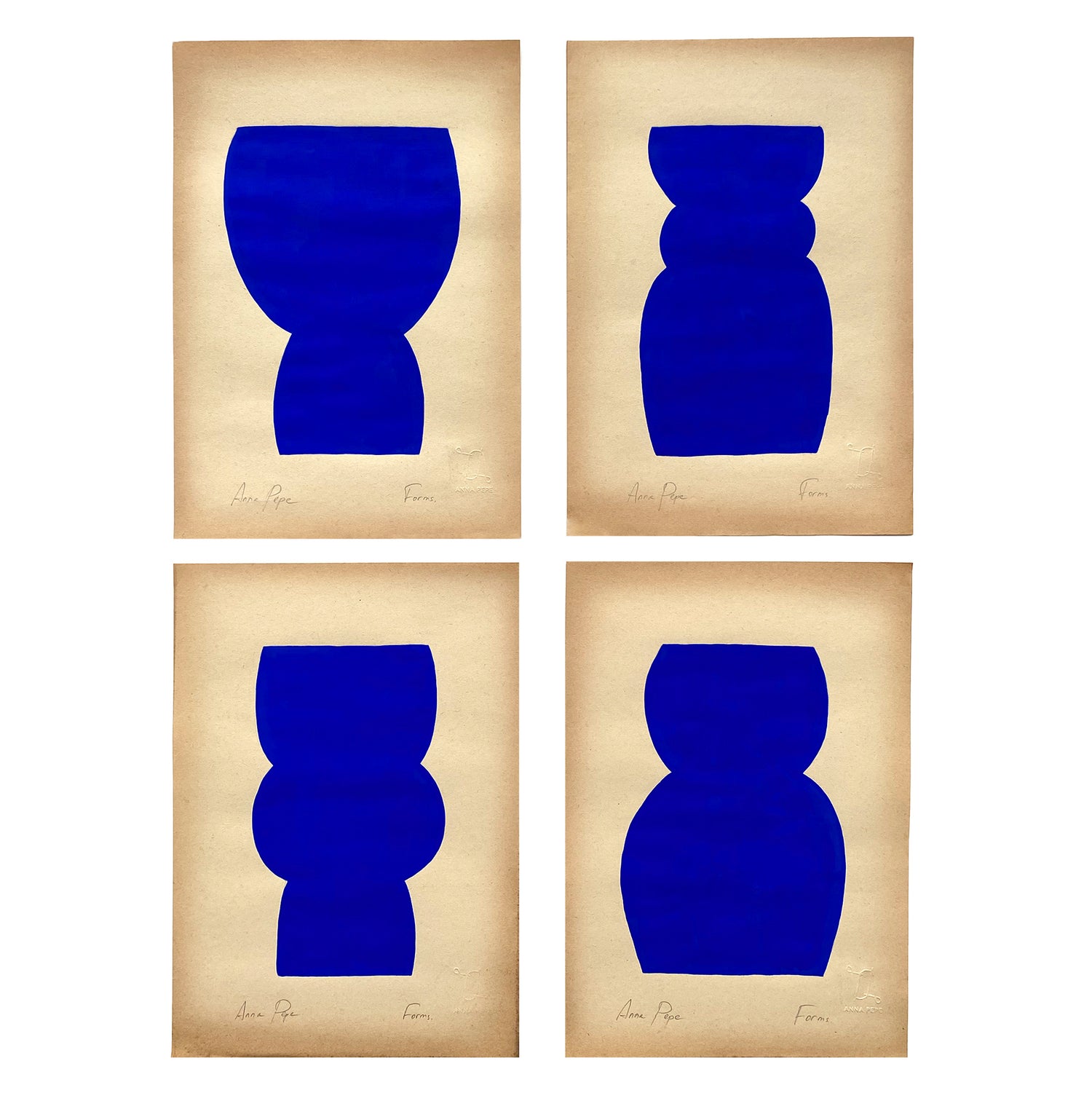 Four unique pieces gouache painting on vintage paper. Gallery wall art set of 4.